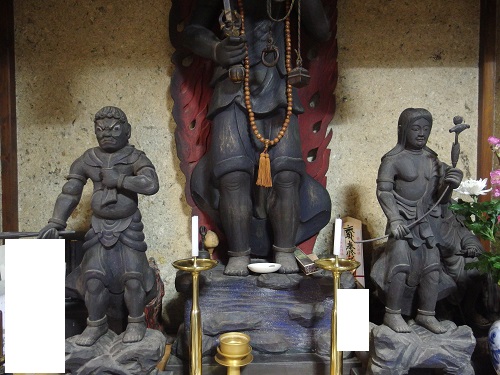 東京にも講があったお不動様です。嘘か本当か大祭にはロマンスカーが臨時停車したとか。真言宗阿闍梨の祖父が亡くなって教団は解散し、現在は父の実家の居間にお祀りされています。お顔は御簾で写りませんがかなり怒っています。
