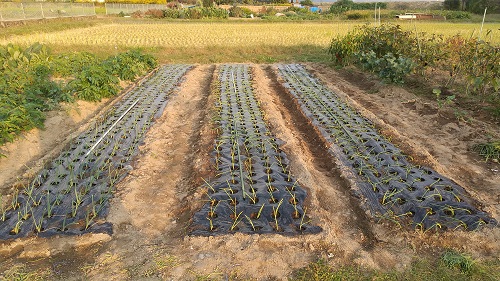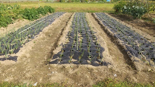 中晩生:赤タマネギ 50本 ←根付いた。植付後1週間