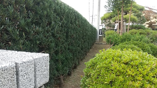 まずは、羅漢槙の垣根を剪定しました。