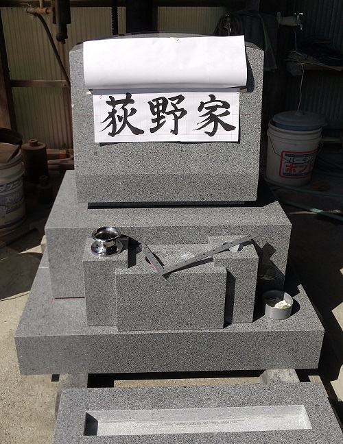 父がお墓を建てたいというので、お墓を建てました。9月に完成しました。家(建替えは半分荻野)もお墓も作って父は素晴らしいです。お墓のお金は全て父が出しましたが、「石屋さんにお任せします」と一切口を出さないので、荻野が全て決めました。父が決めたのは福島石材店様への特命だけです。展示場は「お墓」で、他人のお墓を見ながら決めました。庵治石、大島石、真壁石、小松石 の見分けがつくようになりました。荻野は、吾妻御影石で作りました。綺麗な石が届きました。文字は福島さんがいつもお願いしている書道の先生(東京の人らしい)、彫は手彫りです。