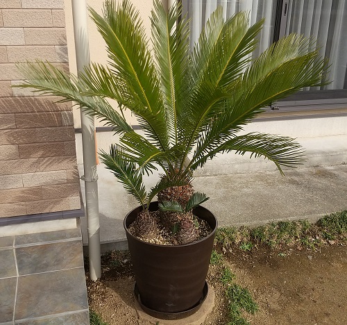 11月、ノキオ10年記念として、ソテツを購入しました。お墓作りで、石屋の福島さんとお寺を回っているとき、ソテツが欲しくなってしまいました。ご住職に「子株をください」とお願いする勇気がなくて、自分で買いました。