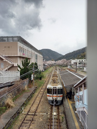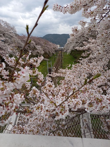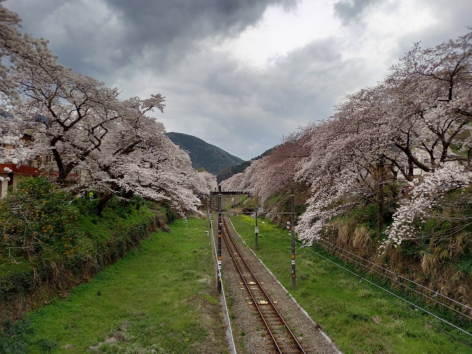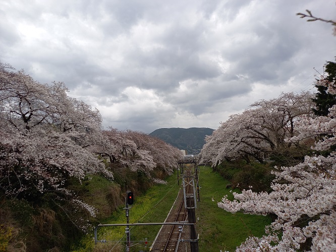 旧山北機関区は掘割のようになっていて、その両側に桜が植わっています。