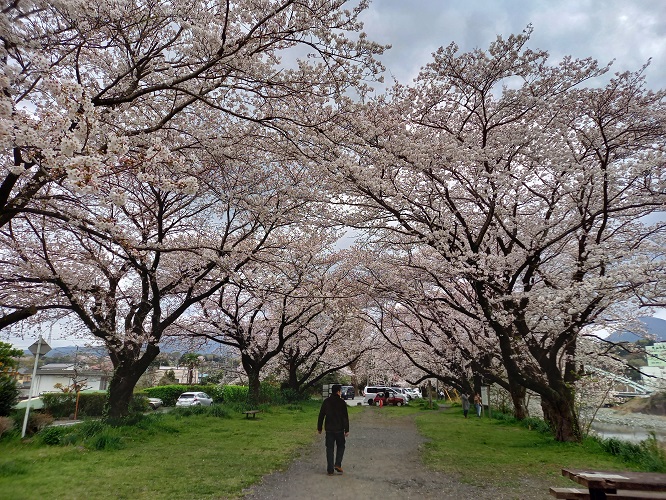 足柄平野を洪水から守る大きな堤の上に桜が植わっています。