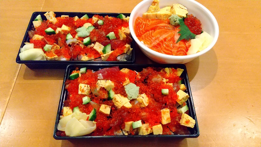3/26の夜ご飯は、会社の近所の鮨屋「みかづき」でテイクアウトのばらちらしと鮭いくら丼を購入しました。相変わらずのお値打ち価格だとおもいます。ばらちらしは手土産にも良いと思います。こんなに美味しいのに、テイクアウトばかりで、店内で食べたのはたった1回です。