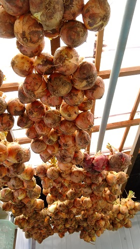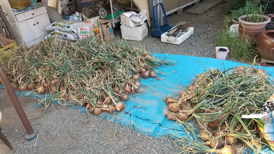 梅雨入り前に終わらせたいことが沢山あります。6/14から雨の予報なので、6/10~6/13までに一気に片づけました。6/9に収穫した玉葱を干します。