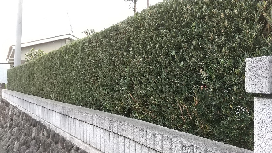 自宅の垣根を刈り込みました。羅漢槙です。5月に消毒しているのですが、油虫が酷いです。近所の3人から褒められました。