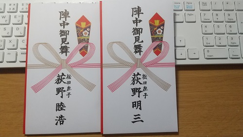 今迄は父の名義だけでしたが、「お前も持って行け」と言うので、荻野は52歳にして初めての陣中御見舞を自分の名義で用意しました。
