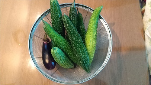ゴーヤ7本と茄子1本
